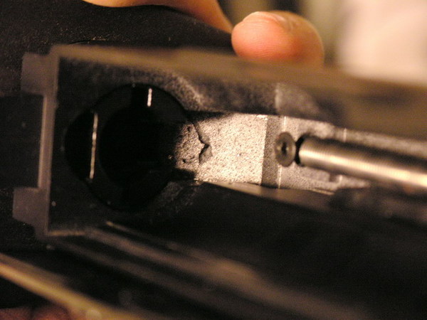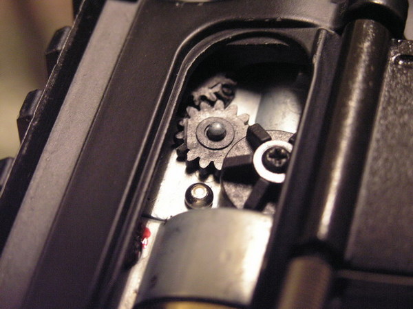 ^^^^ 拉開槍機片後的狀況. 注意第二張 hop-up 齒被削掉的狀況