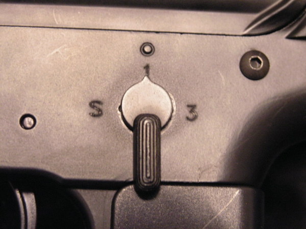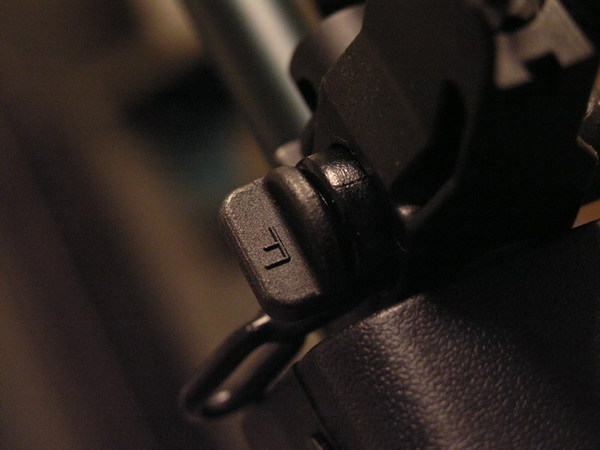 ^^^^ 射擊模式選擇鈕, 注意對鎖插銷