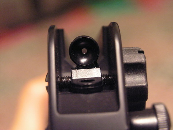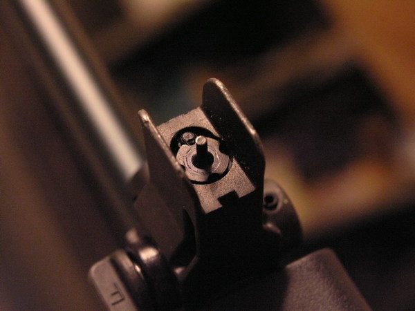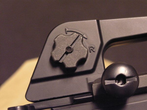 ^^^^ 切換瞻孔時需要非常用力, 不知道材質為何? 如果是亞鉛的話那應該扳沒幾次就會斷了. 而且近距離用覘孔內有嚴重毛邊(是這樣叫嗎?)