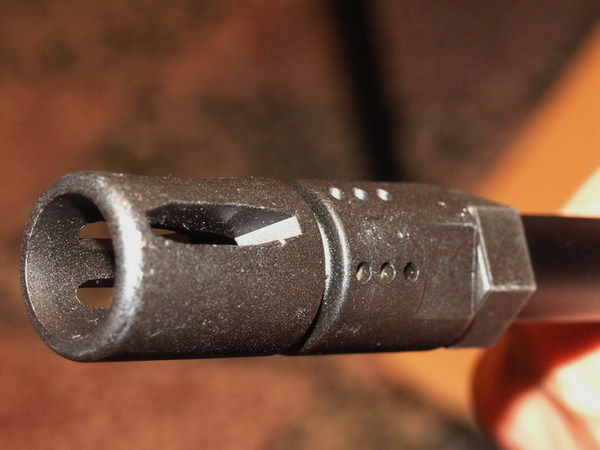 ^^^^ 火帽後面的四排小孔, 則是與前測的大孔採 15 度差距, 上方四角配置. 不過 SRC 的加工方式是上兩排垂直鑽孔, 兩側則是水平鑽孔, 且同樣都只有最靠近槍身那一孔有穿過一小部份. 與真槍相比如何則不得而知