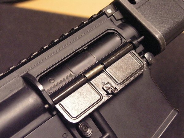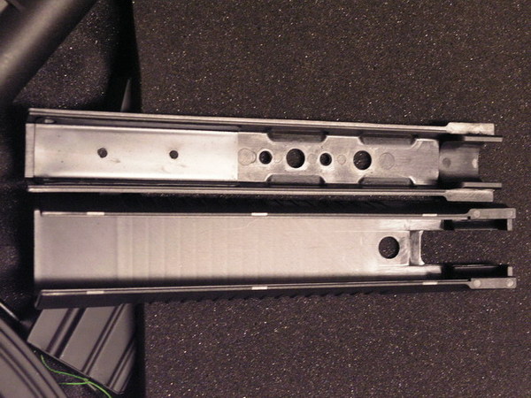 ^^^^ 彈匣座. 在兩側各有兩條凸起幫助彈匣穩定不晃動