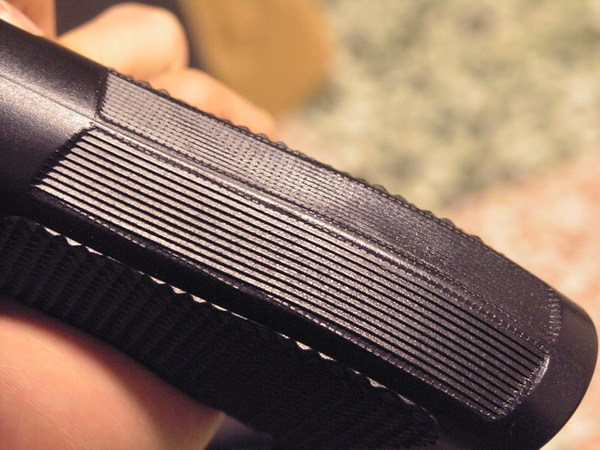 ^^^^ 特殊的握把外型及紋路. 底板有 SRC 標誌及一些肋條. 螺絲膠則是拿到時就有