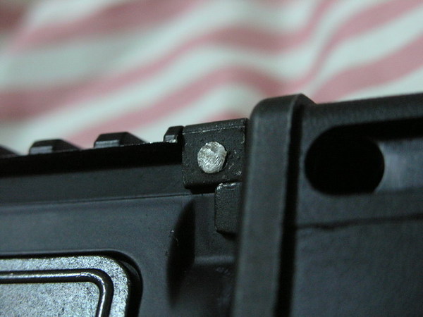 ^^^^ 使用槍背帶環來幫助固定上槍身. 第一張是原本的插銷, 短了約 2.5mm. 第二張是在右側打入一小段槍背帶環幫助固定. 最底下是槍背帶環的殘骸與原本長相