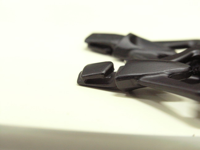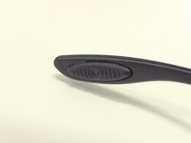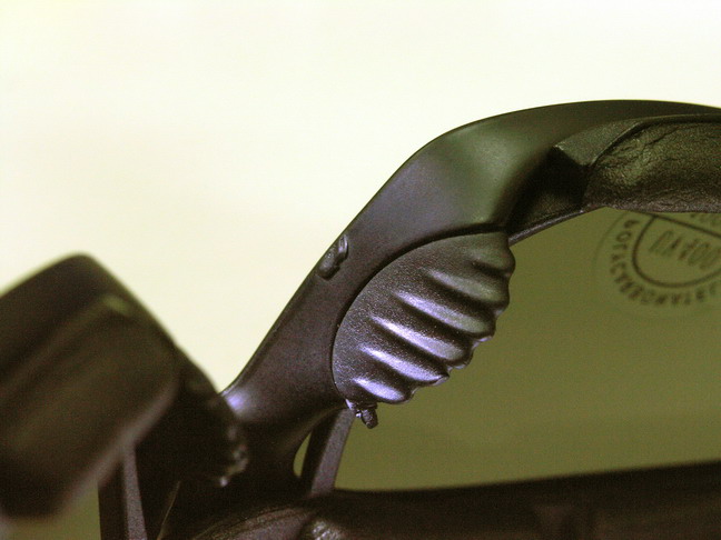 ^^^^ 鼻樑墊的橡膠是直接黏上去, 不可調整不可拆卸. 唯一沒去除乾淨的的塑膠疙瘩在這邊出現了, 但卻不尖銳, 完全不影響到實際佩帶.