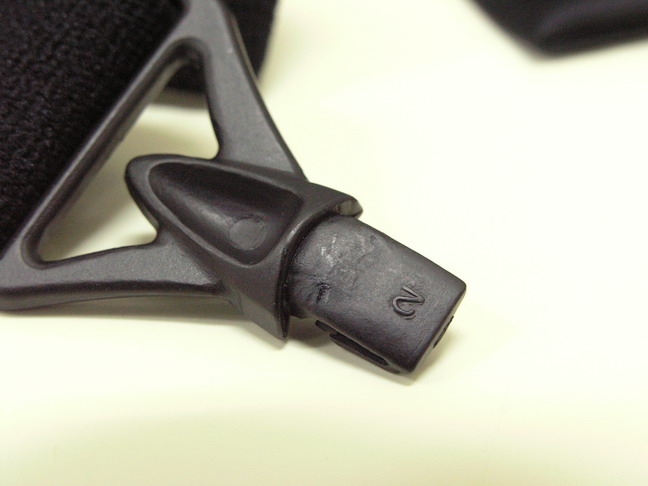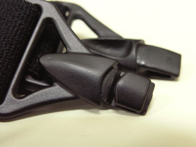 ^^^^ 可替換鬆緊帶扣鈕的細部照片. 看起來結構有點過於細緻, 不知道耐用度如何? 但護目鏡這種東西照理說掛上去後也不會有太多機會去碰到或幹麻的..