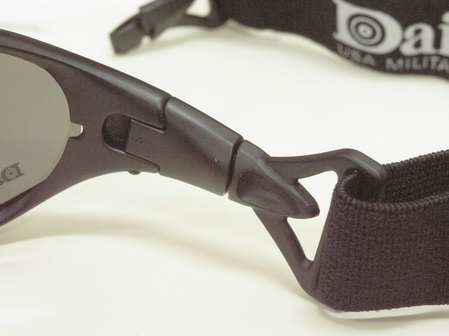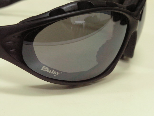 這款眼鏡同時也有警新的完全同款樣式產品上市, 當初我是以為這是同一款產品, 只不過掛警新的牌或是掛 Daisy 的牌出來賣罷了. 而照警新的說法..我是買到仿冒品了?!好像有點糟糕, 不過比較還是要作的. 不同處在於 Daisy 換成 Guarder, 所附攜行盒不一樣, 橡膠彈性鏡框上的海綿墊圈用的材質不一樣(警星的似乎較厚, 但較鬆散的感覺), 警新的鏡腳墊從照片上看來"似乎"較厚. 可參照這個連結. 說真的..我分不清楚哪個是仿冒哪個是正品? 依價格通常是正品較貴的通則來看, 當然 Guarder 是有可能是正品. 但..這也是我購買之後才發現的..@@ 若這款掛 Daisy 牌的眼鏡是仿品的話, 那也只能說工藝水準相當不錯..因為連鏡腳活動座接合後的鬆動程度也不大. 掛 Daisy 的這款眼鏡在國外也一樣有賣, 如果 Guarder 真的是正品, 而非同樣產品掛不同牌子的話, 大家可以好好觀察一下後續發展.