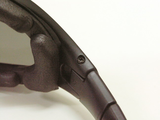 ^^^^ 從底下就可以看到整個眼鏡組唯一用到的金屬部件--螺絲. 這是用來固定鏡腳活動座的.
